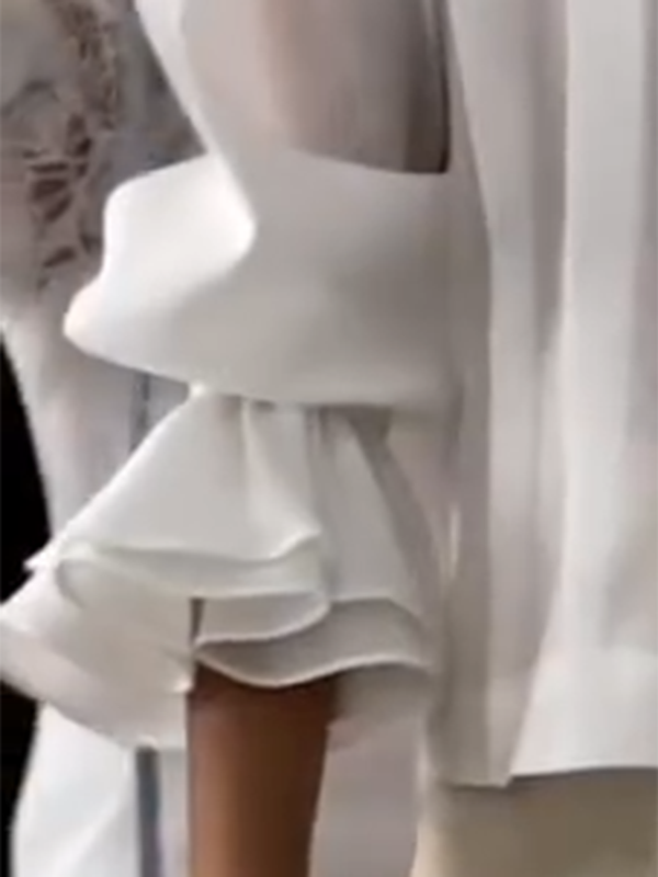 Long Sleeves Elasticity Solid Color Split-Joint Tiered Lapel Blouses&Shirts Tops