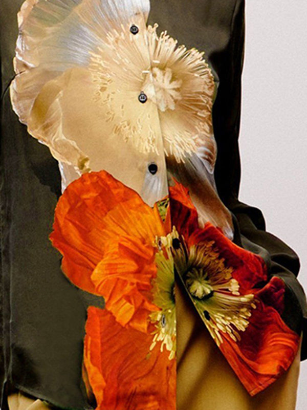 Long Sleeves Loose Floral Printed Split-Joint Lapel Blouses&Shirts Tops