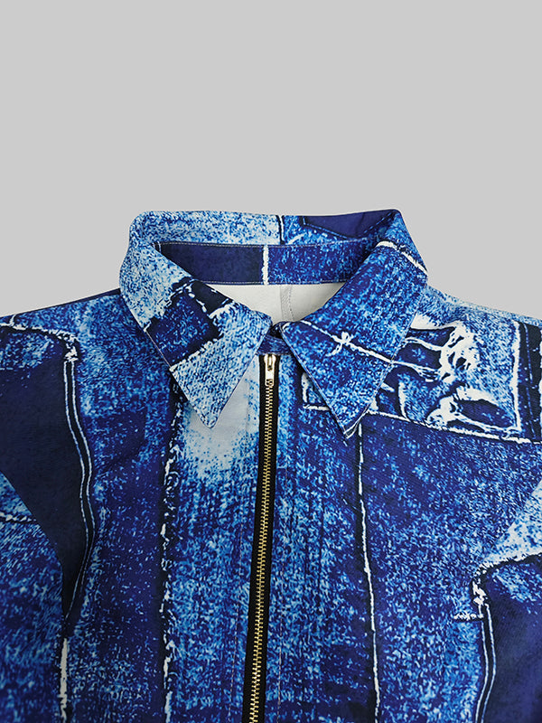Long Sleeves Printed Zipper Lapel Maxi Dresses Shirt Dress