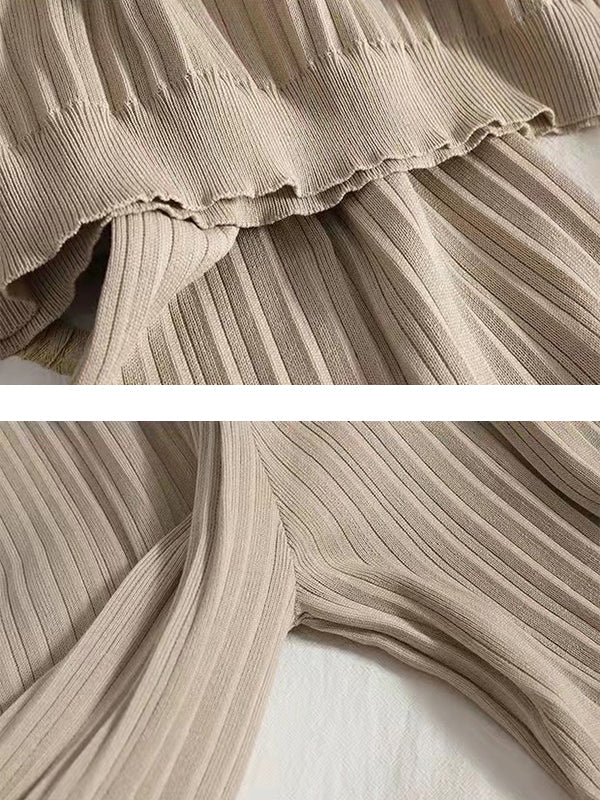 Loose Knitting Raglan Sleeve Solid Color V-Neck Sweater Top + Pants Two Pieces Set