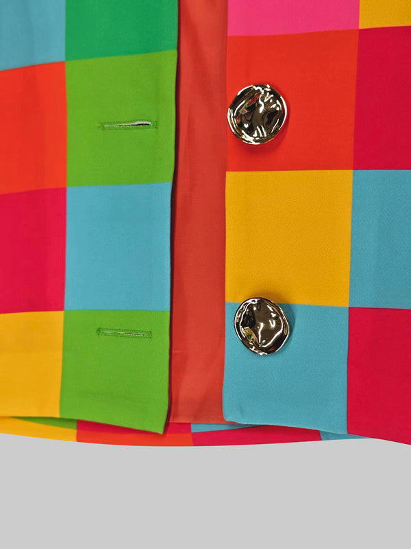 Loose Three-Quarter Sleeves Buttoned Plaid Lapel Outerwear