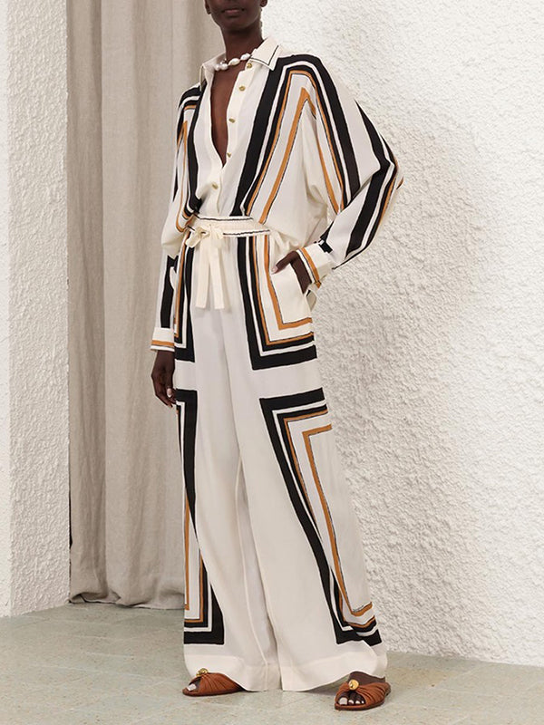 Loose Wide Leg Plaid Striped Tied Waist Casual Pants Bottoms Trousers