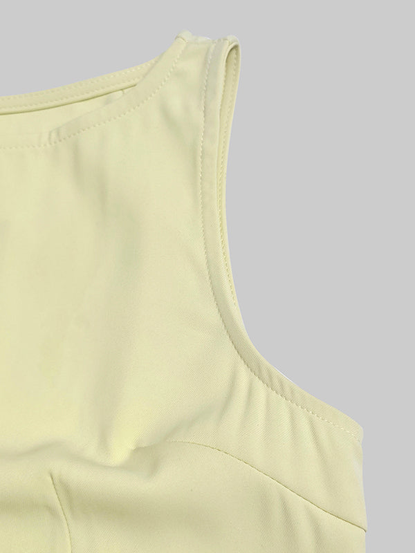 Sleeveless Gauze Pleated Solid Color Split-Joint Boat Neck Evening Dresses Maxi Dresses